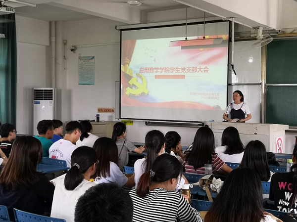 为了帮助同学们在学期初收心,并加强支部建设、完善支部工作体系,努力开展好今后支部活动。2018年9月6日(周四)中午12:40,应用数学学院学生党支部大会在明理园1#305顺利召开。参加本次会议的有我院15、16级全体党员和入党积极分子以及17级入党积极分子,我院党务工作办公室副主任林珊珊老师出席此次会议。