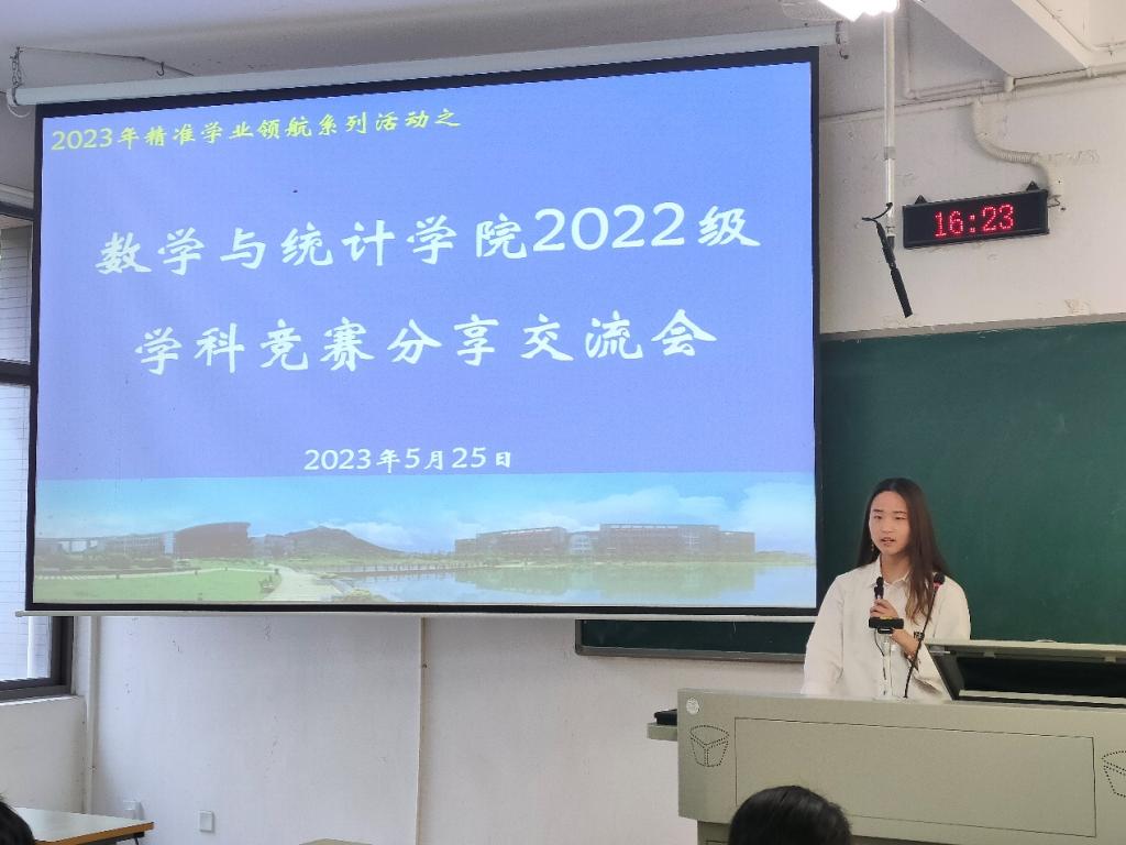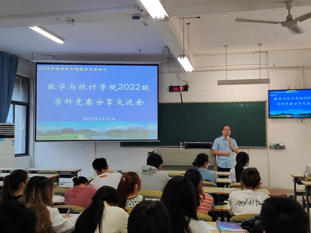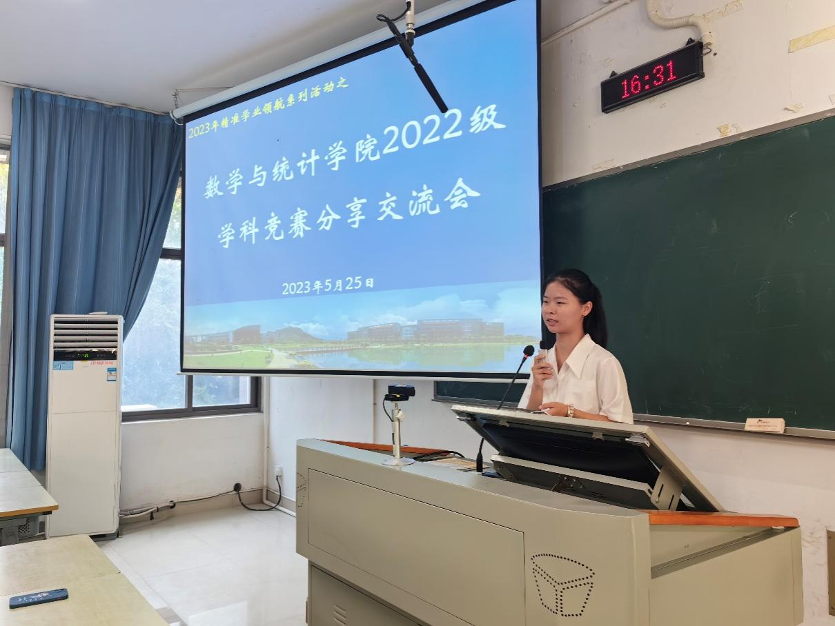 为进一步加强我院学风建设,引导学生积极主动的参与到学科竞赛活动中来,营造良好的学习氛围。我院于5月25日举办了“2022级精准学业领航系列活动之学科竞赛分享交流会”。本次会议邀请到在19级应用统计班在学科竞赛方面取得突出成绩的4位学姐分享经验,为22级的同学们提供切实可行的经验指导。学院党总支杨数雄书记、学院翟绍辉院长、应用统计系系主任钟俊江参加了会议。会议由22级辅导员李偲主持。